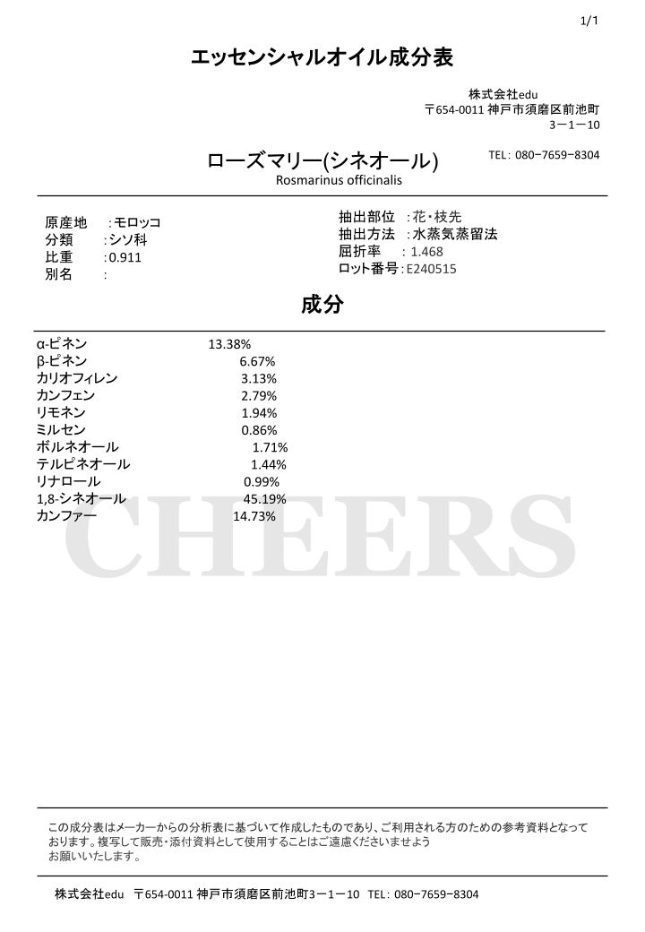 精油「ローズマリー/シネオール」