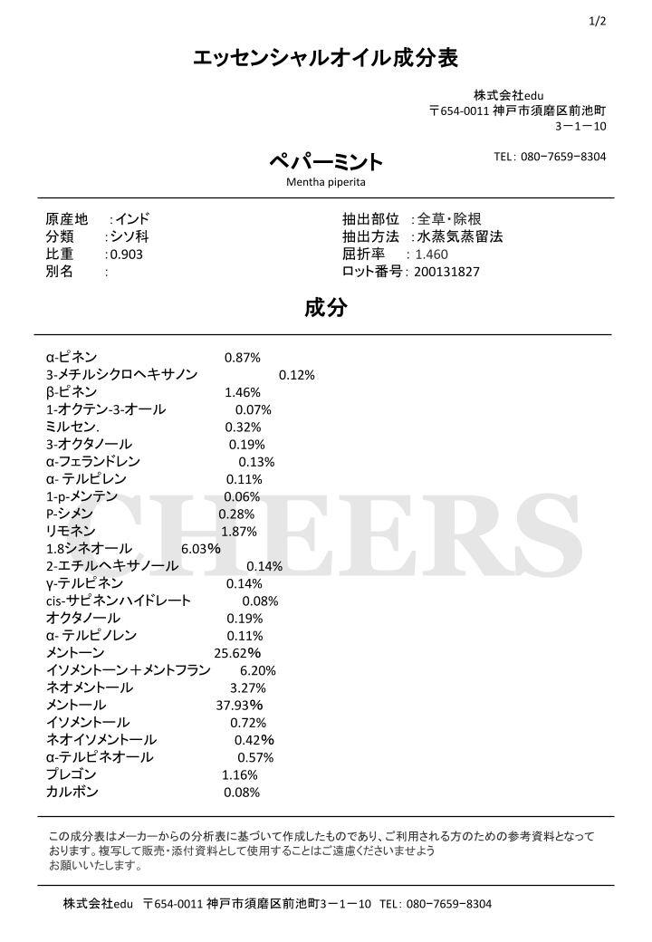 100%天然精油の原油のみを使用し一切希釈していません。